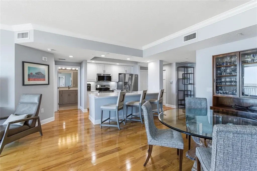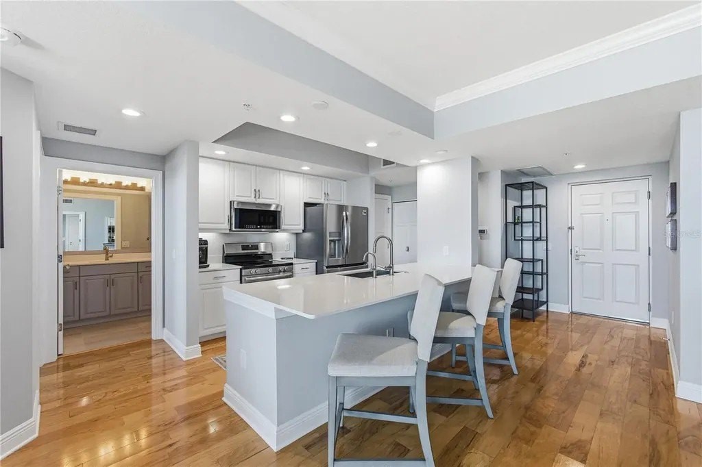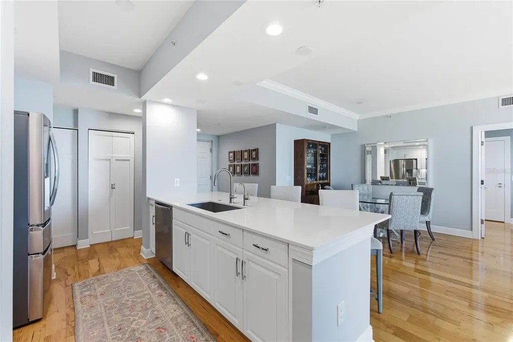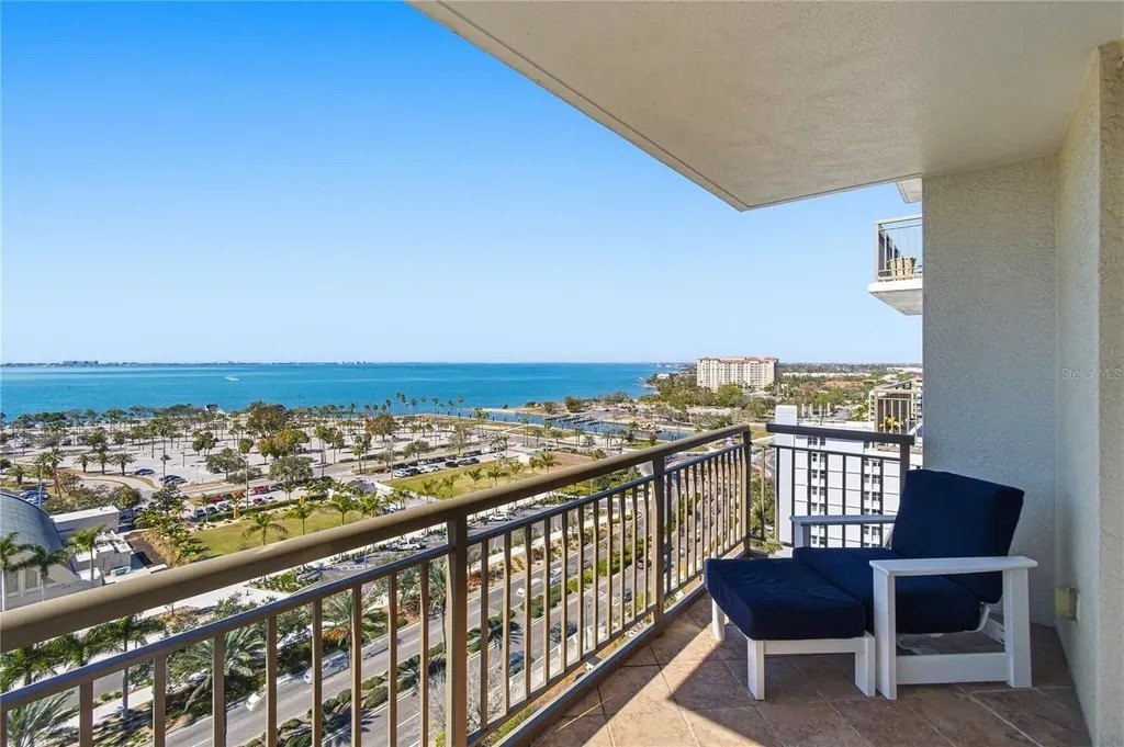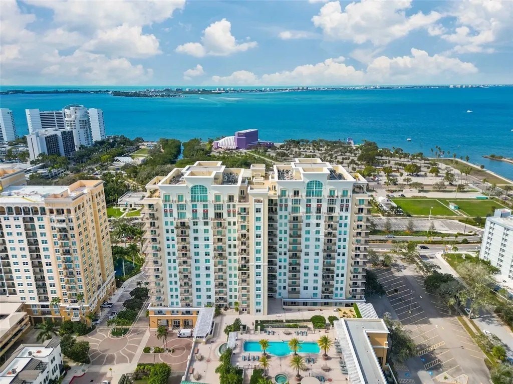 Prepare to be wowed. This expansive water-view and renovated residence on the 12th floor delivers breathtaking Sarasota sunsets and tranquil bayfront vistas the moment you step inside. Thoughtfully designed and impeccably maintained, the home is ideally situated within Sarasota's cultural epicenter-just steps from world-class performing arts, tranquil garden spaces, the waterfront promenade, and The Bay Park's scenic walking and cycling paths and multitude of activities. The building itself presents a truly elevated lifestyle, featuring an exceptional array of amenities including a resort-style pool and spa, fitness center with sauna, private theater, billiard room, library, club and tea rooms, business center, wine storage, bicycle storage, private storage, and three guest suites. Residents also enjoy the convenience and security of a 24-hour doorman and two deeded parking spaces. Inside the residence, refined updates enhance both form and function. Features include fresh paint, newer interior doors with glass knobs, custom closets, and plantation shutters. The kitchen has been tastefully updated with a reconfigured island showcasing a single-level quartz countertop, new sink, and new appliances installed in December 2024. The spa-inspired primary bath and renovated second bath offer a calming, contemporary aesthetic. Major system updates include a 2019 HVAC and a 2017 water heater, ensuring peace of mind. This is elevated Sarasota living-where sweeping water views, walkable culture, and turnkey luxury come together in one exceptional home.